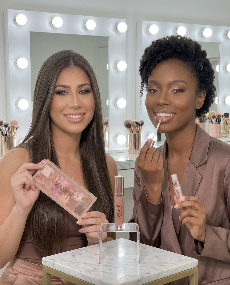 Vasek Cosmetics High-Shine Lip Gloss: Achieve the viral glass skin look with our non-sticky, hydrating lip glosses that provide a voluminous, high-impact glow.